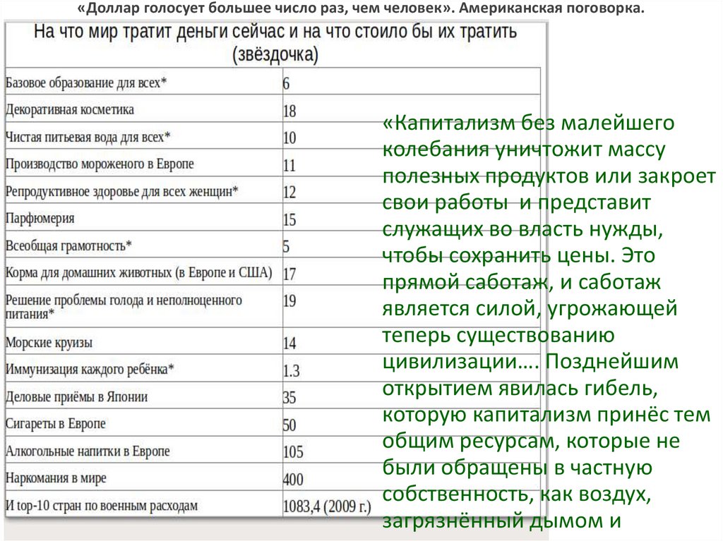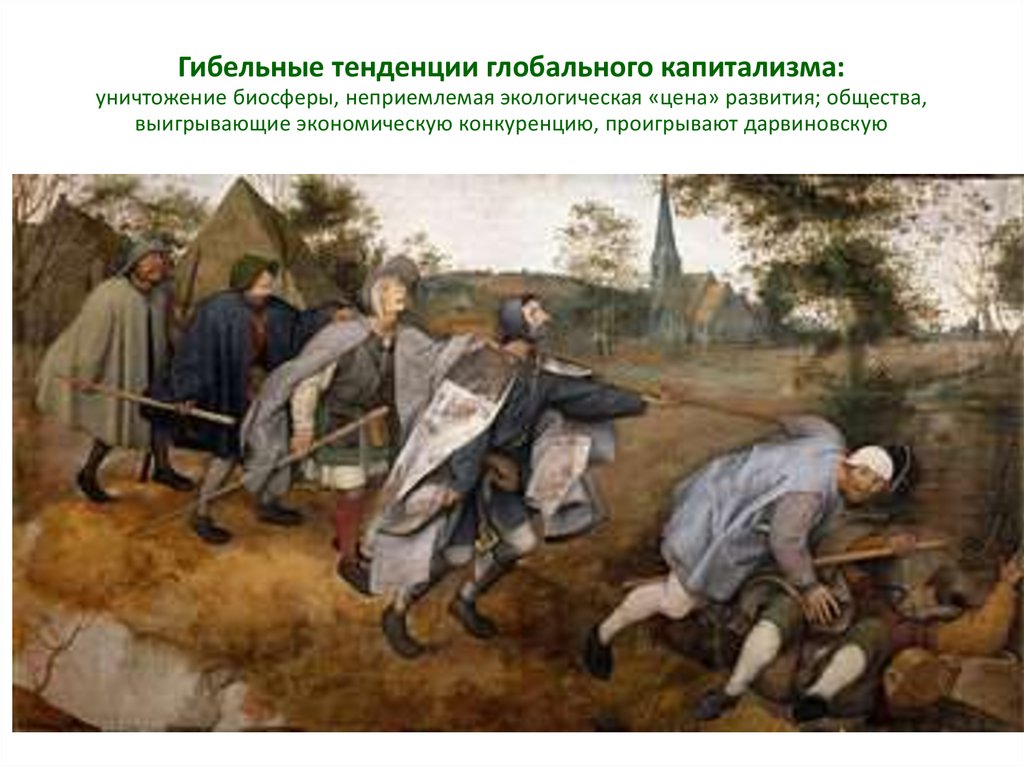 Гибельные тенденции глобального капитализма:уничтожение биосферы, неприемлемая экологическая «цена» развития; общества,