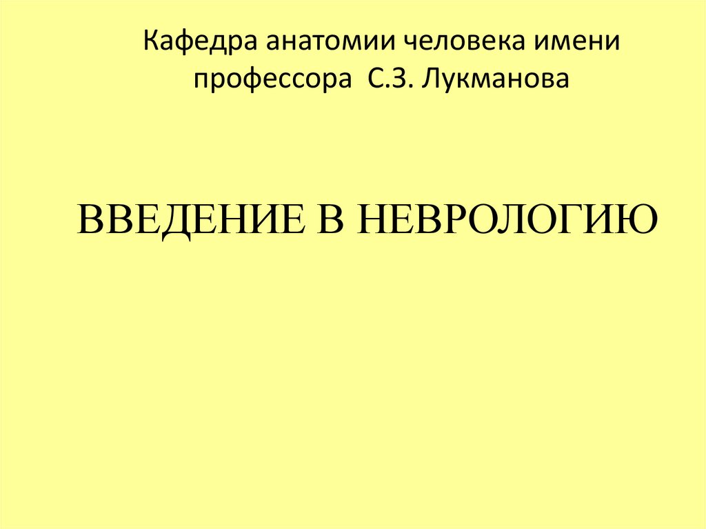 ВВЕДЕНИЕ В НЕВРОЛОГИЮ