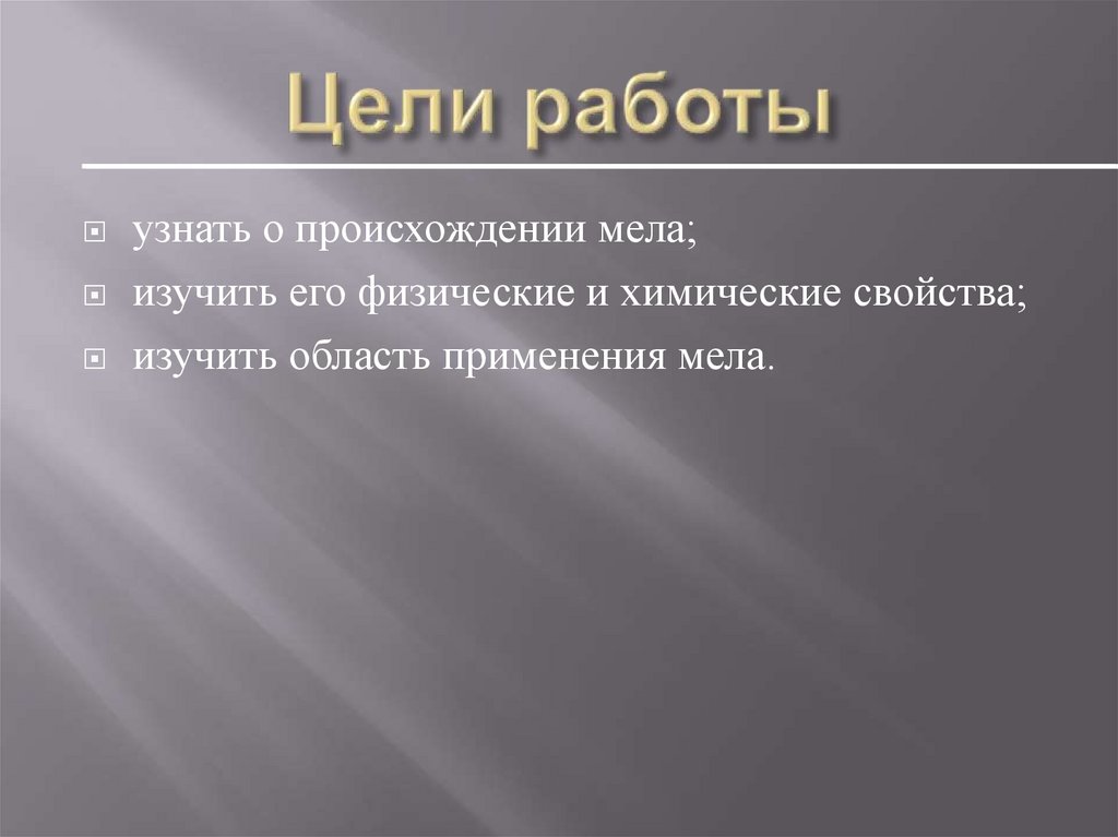 узнать о происхождении мела;изучить его физические и химические свойства;