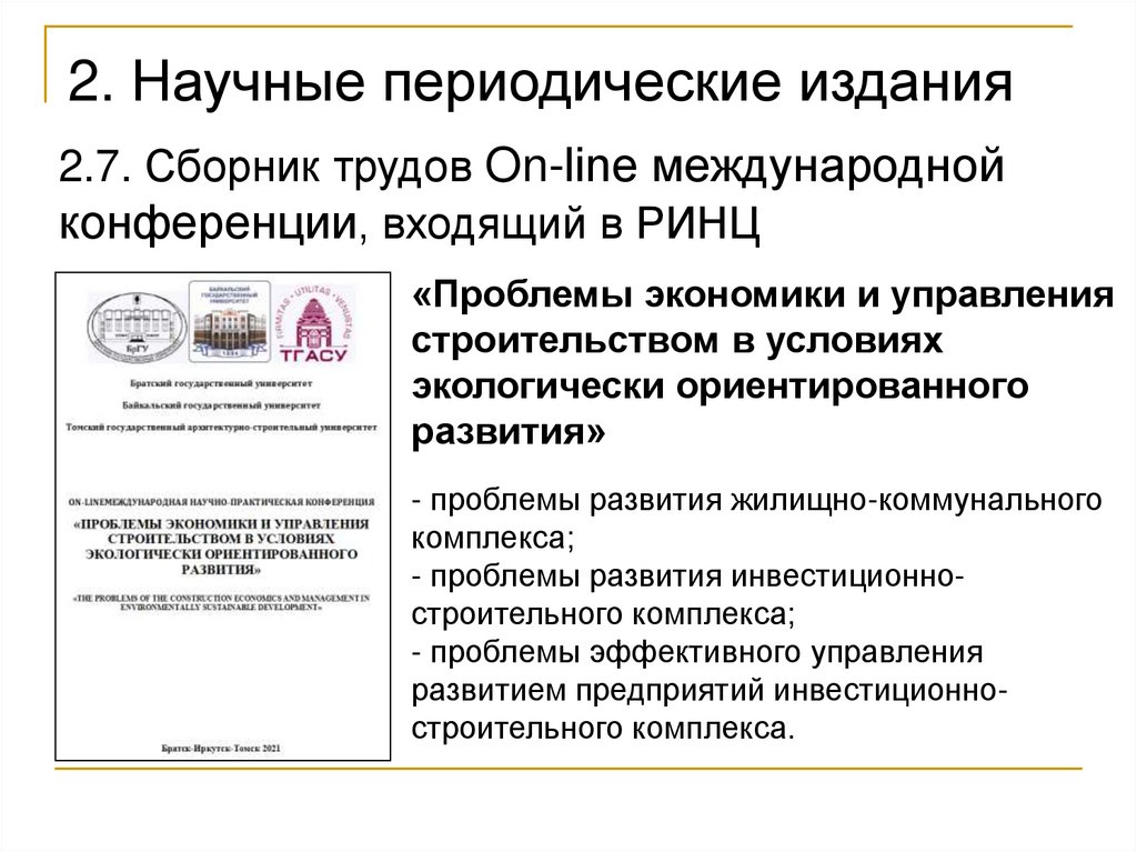 3. Научные конференции БрГУ3.7. IX On-line международная научно-практическая