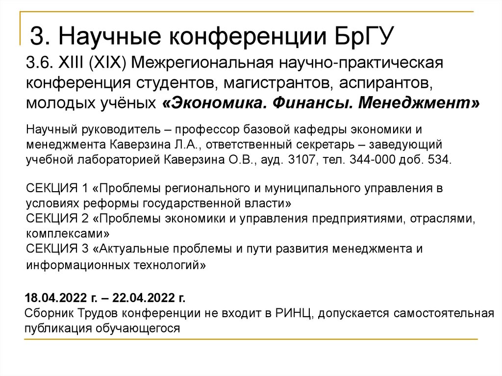 3. Научные конференции БрГУ3.5. ХIII (XVIII) Всероссийская научно-практическая