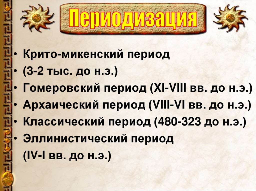 Архаический период (VIII-VI вв. до н.э.)