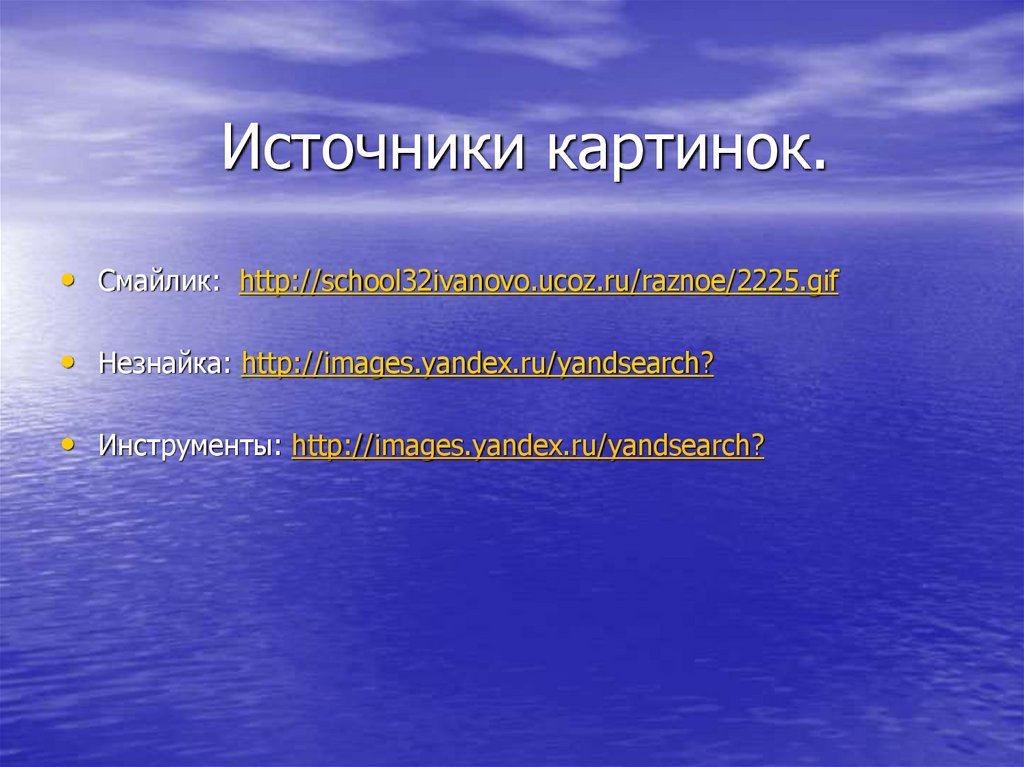 Источники картинок.• Смайлик: http://school32ivanovo.ucoz.ru/raznoe/2225.gif