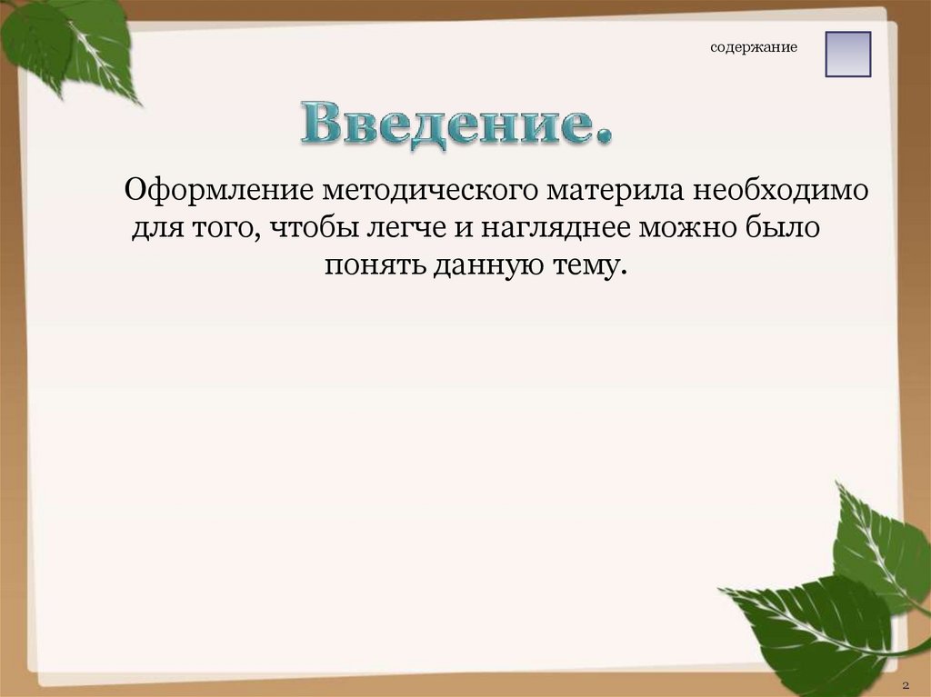 содержаниеОформление методического материла необходимо