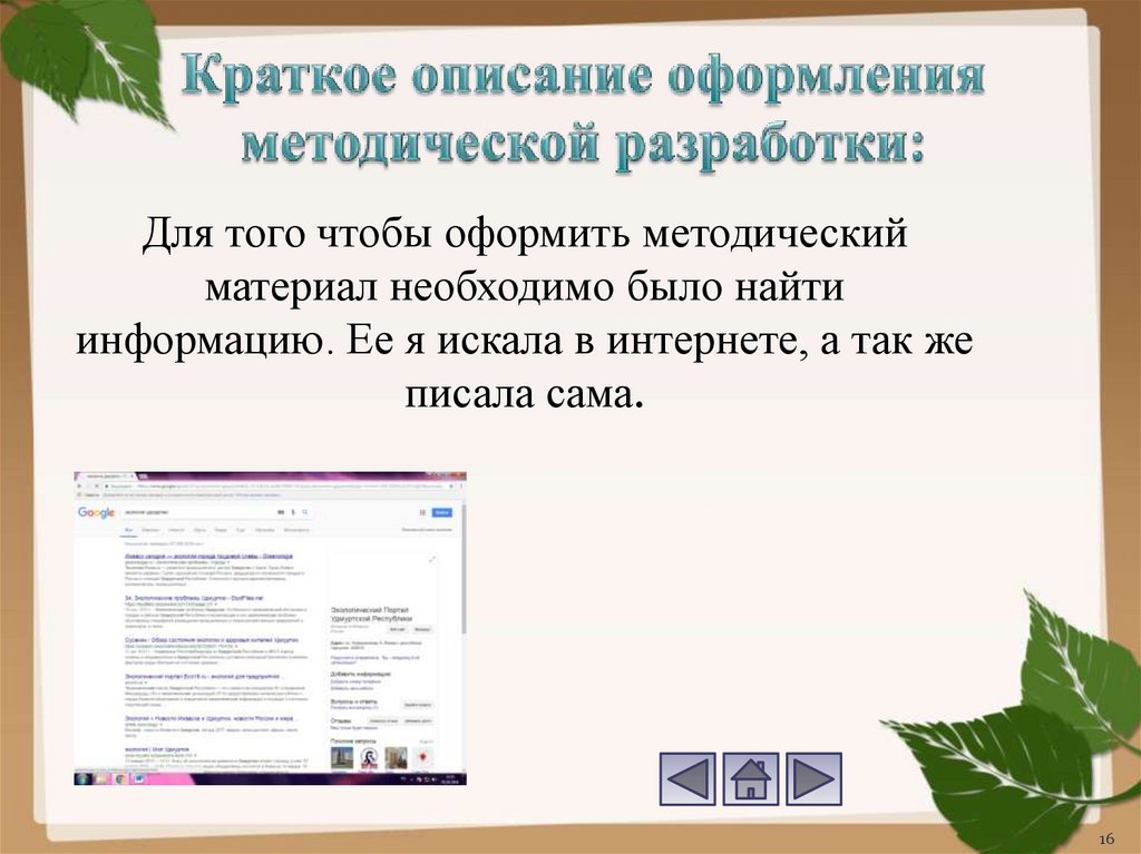 Для того чтобы оформить методическийматериал необходимо было найти