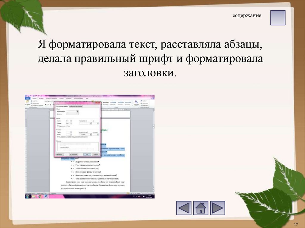 содержаниеЯ форматировала текст, расставляла абзацы,