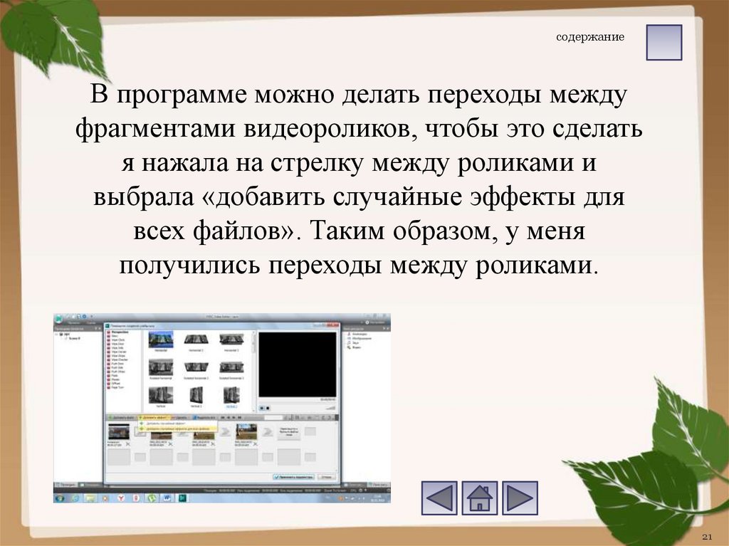 содержаниеВ программе можно делать переходы между