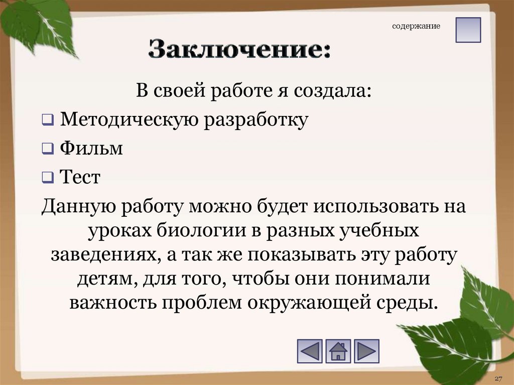 В конце я написала заключение по работе, по