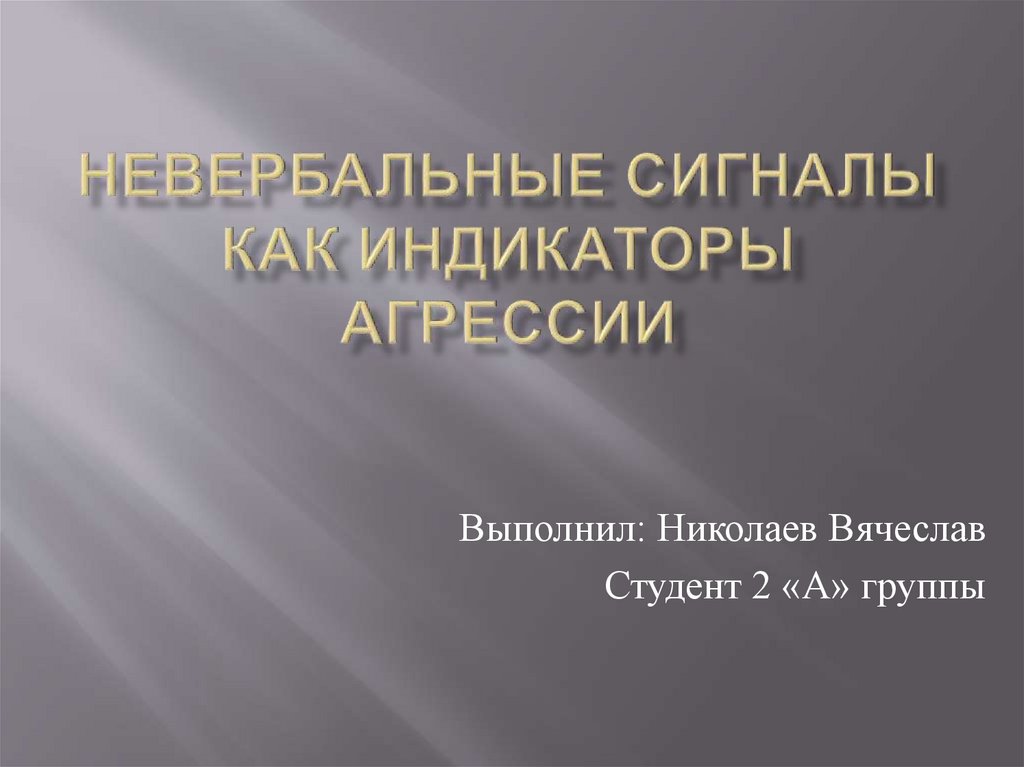 Выполнил: Николаев ВячеславСтудент 2 «А» группы