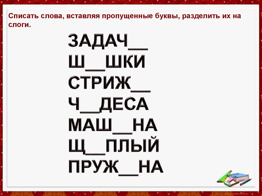 Списать слова, вставляя пропущенные буквы, разделить их на