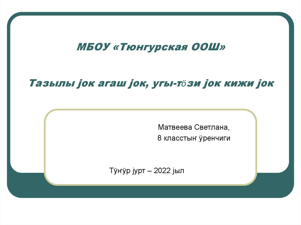 1. МБОУ «Тюнгурская ООШ» Тазылы јок агаш јок, угы-тӧзи јок кижи јок