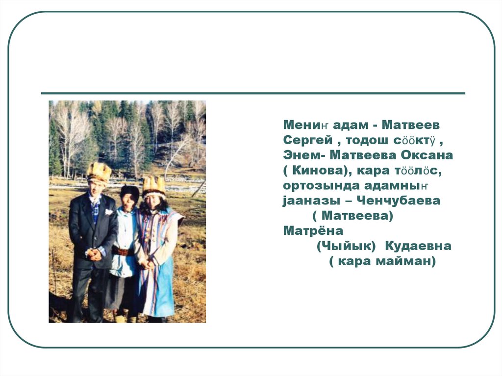Телёсов Айылдаш, мениҥ таадамныҥ адазыныҥадазы, тӧлӧс сӧӧктӱ, Тӱҥӱр јурттыҥ јанында