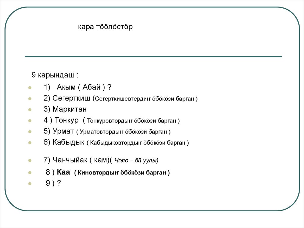 кара тӧӧлӧстӧр9 карындаш :