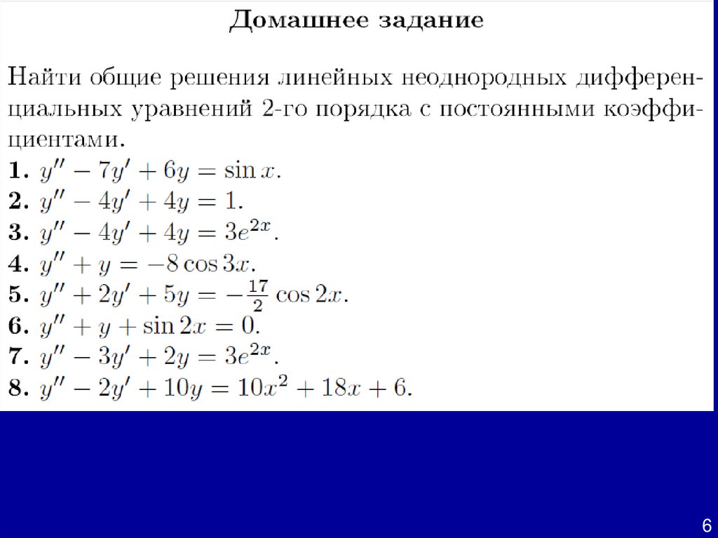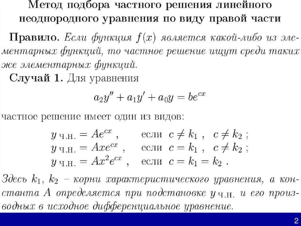 Метод подбора частного решения линейного неоднородного уравнения по виду правой части. ПЗ №24