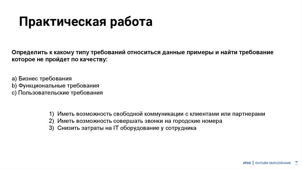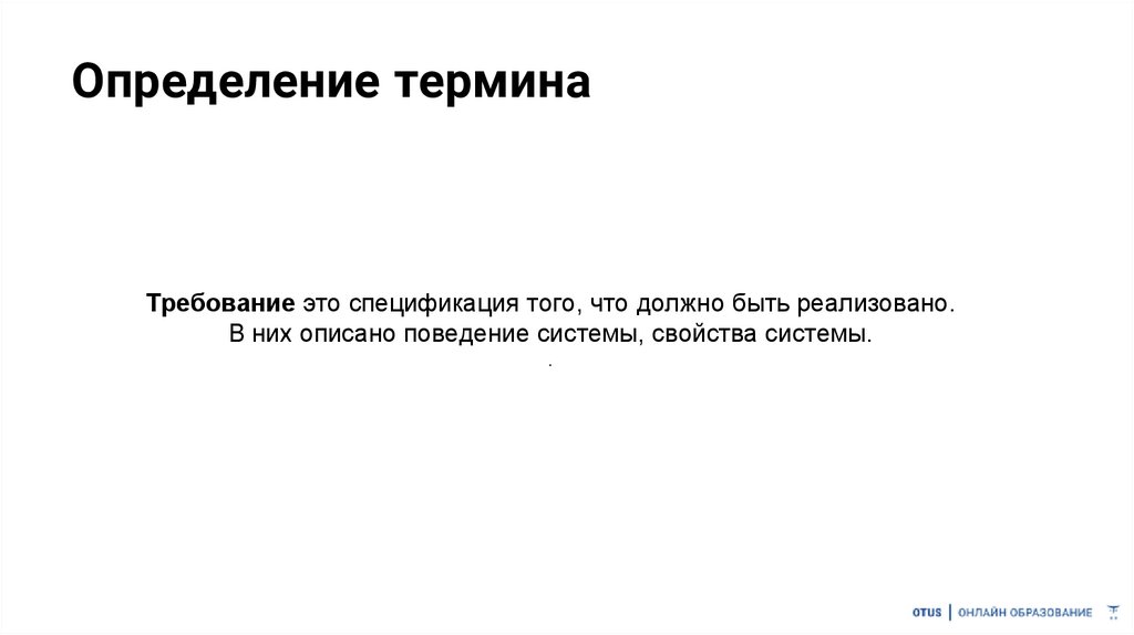 Определение терминаТребование это спецификация того, что должно быть реализовано.