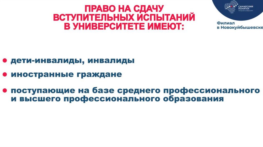 Филиал ФГБОУ ВО "СамГТУ" в г. Новокуйбывшевские. Правила приёма
