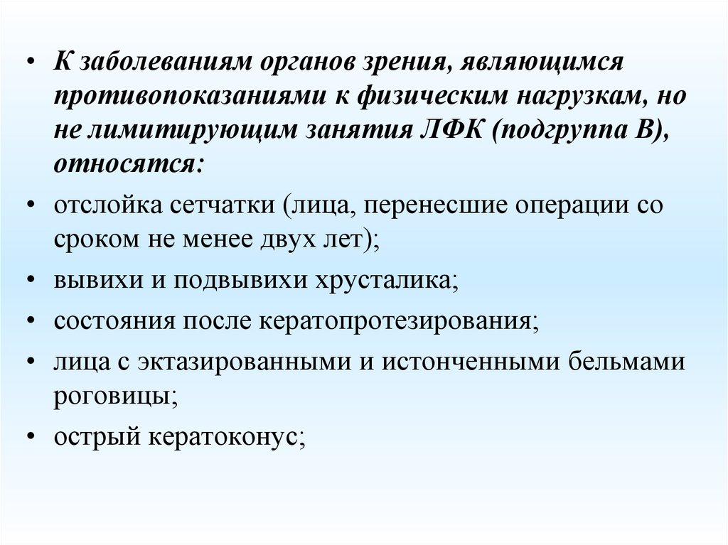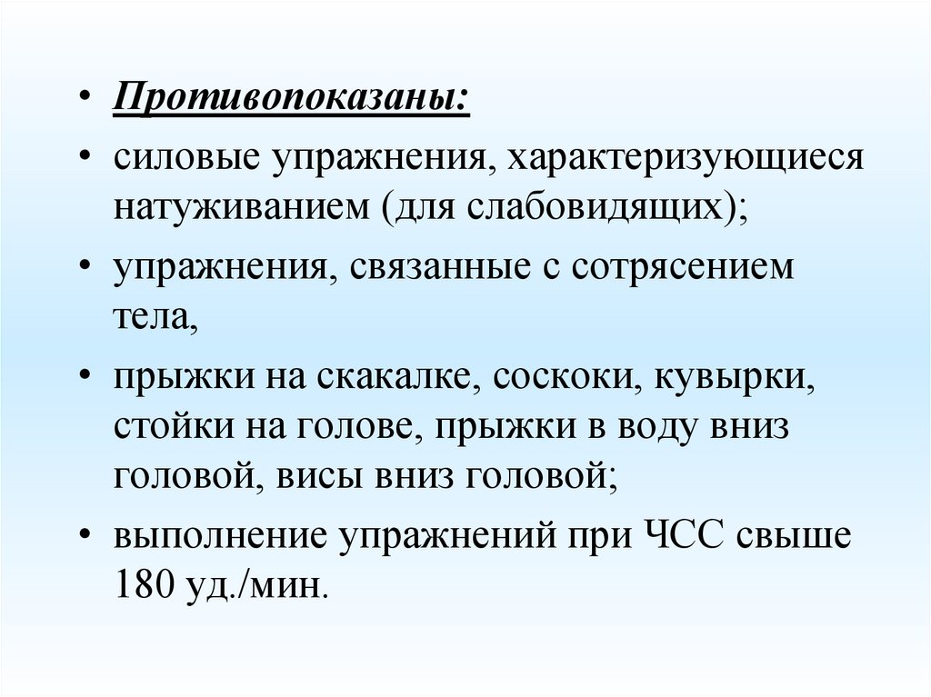 • К заболеваниям органов зрения, являющимсяпротивопоказаниями к физическим нагрузкам, но