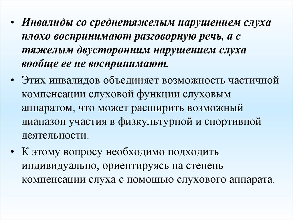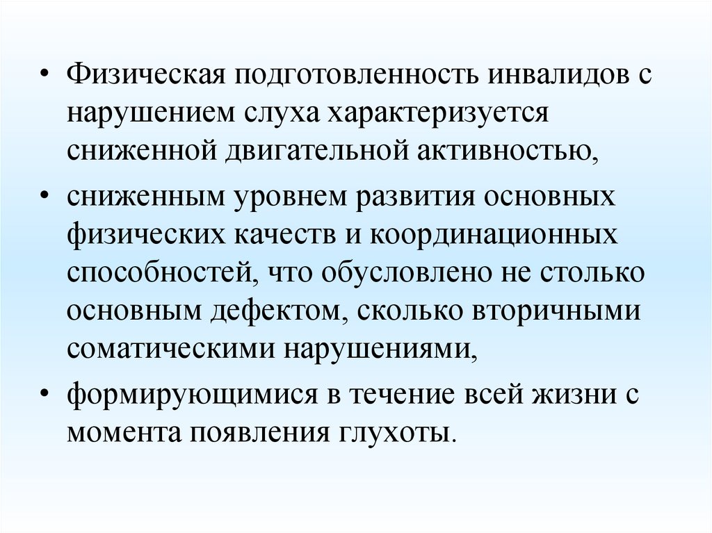 • Физическая подготовленность инвалидов снарушением слуха характеризуется