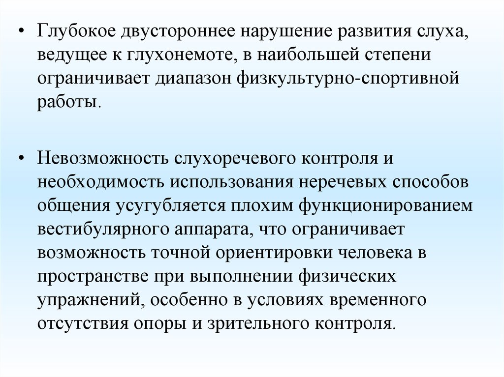 • Глубокое двустороннее нарушение развития слуха,ведущее к глухонемоте, в наибольшей степени