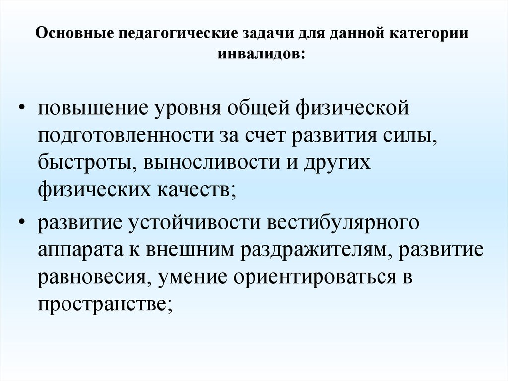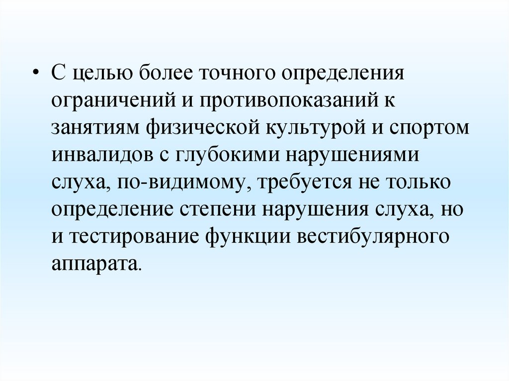 • При определении возможности допуска инвалидов позрению к физкультурным занятиям, спортивным