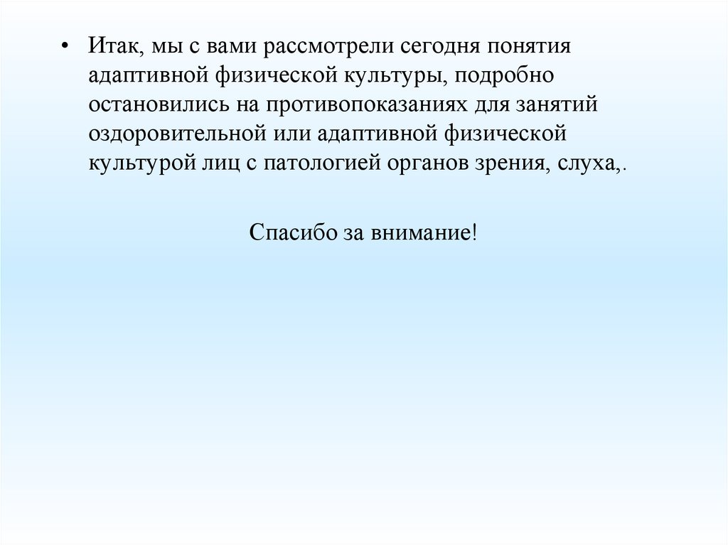 • Итак, мы с вами рассмотрели сегодня понятияадаптивной физической культуры, подробно