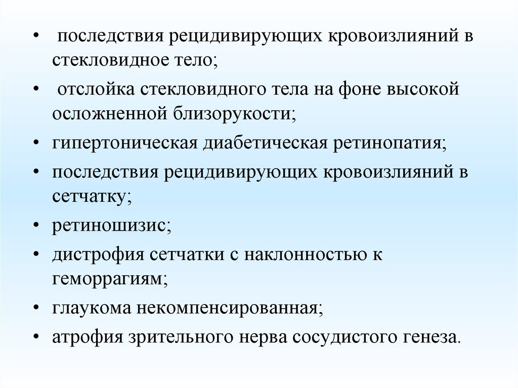 • последствия рецидивирующих кровоизлияний встекловидное тело;