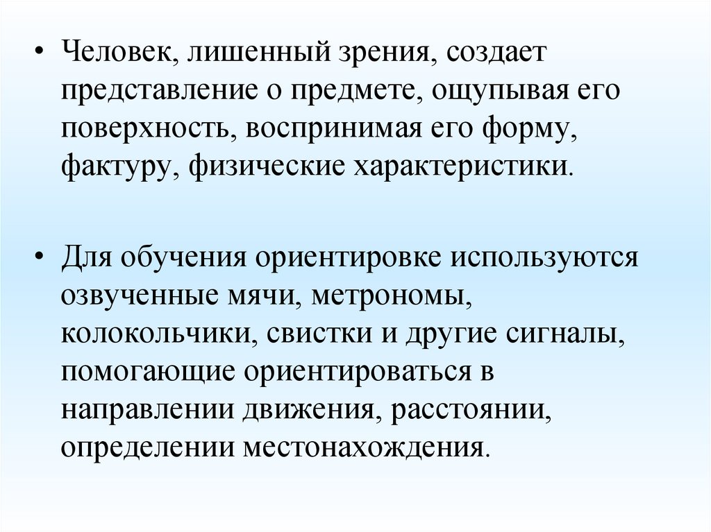 • Человек, лишенный зрения, создаетпредставление о предмете, ощупывая его