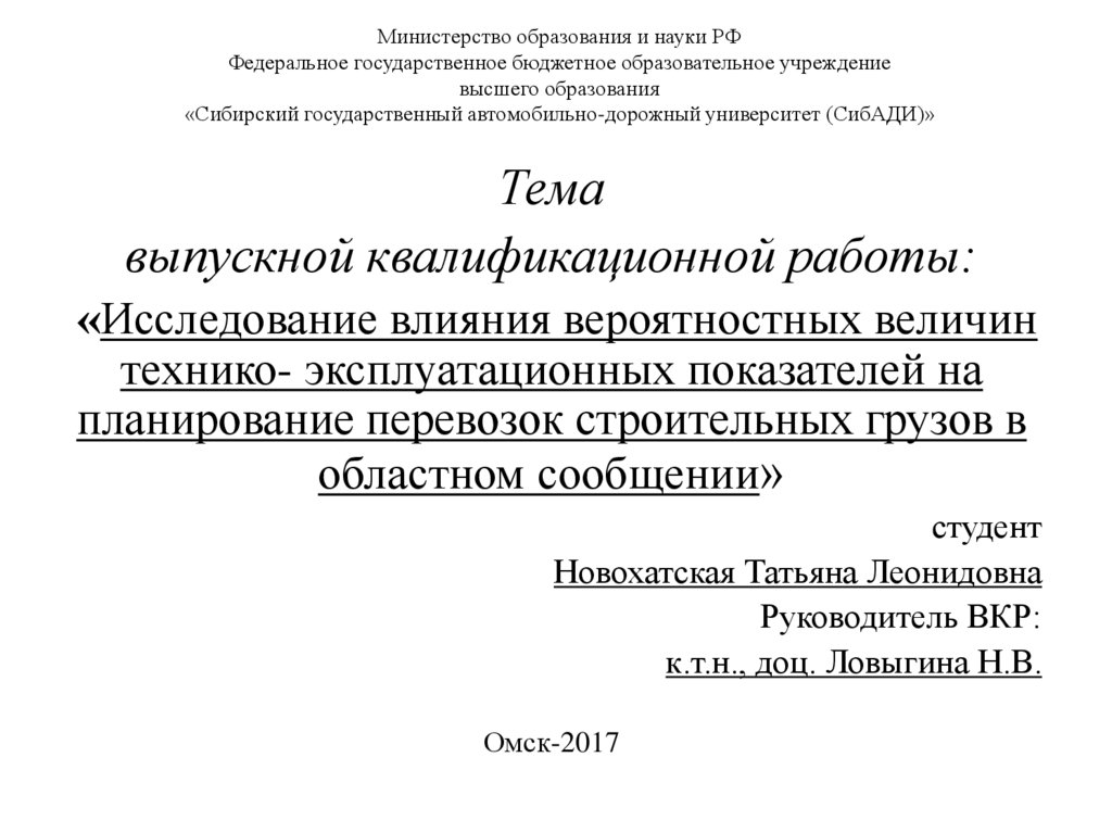 «Сибирский государственный автомобильно-дорожный университет (СибАДИ)»Тема