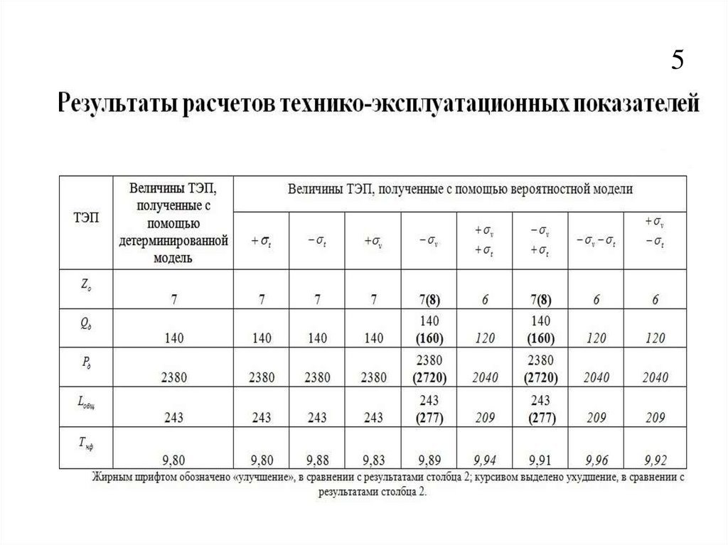 технико- эксплуатационных показателей на