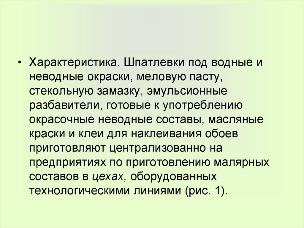 • Характеристика. Шпатлевки под водные иневодные окраски, меловую пасту,