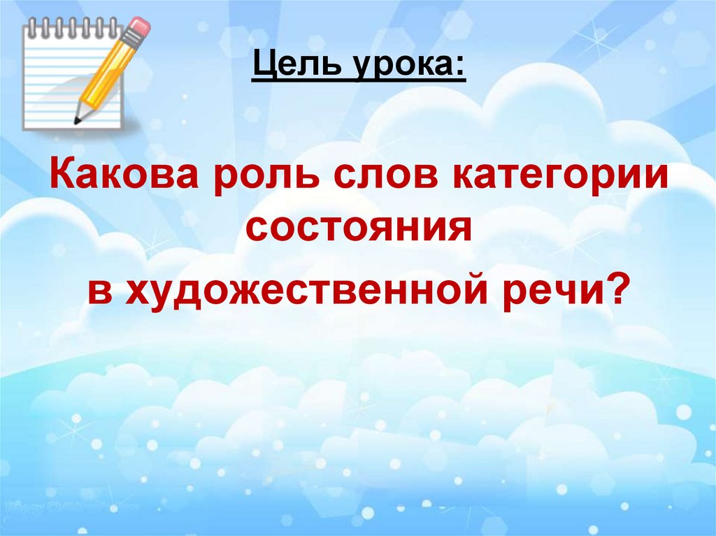 Цель урока:Какова роль слов категории