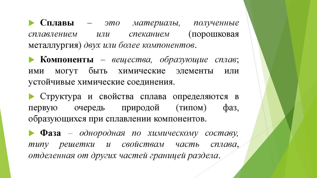 Компоненты – вещества, образующие сплав;