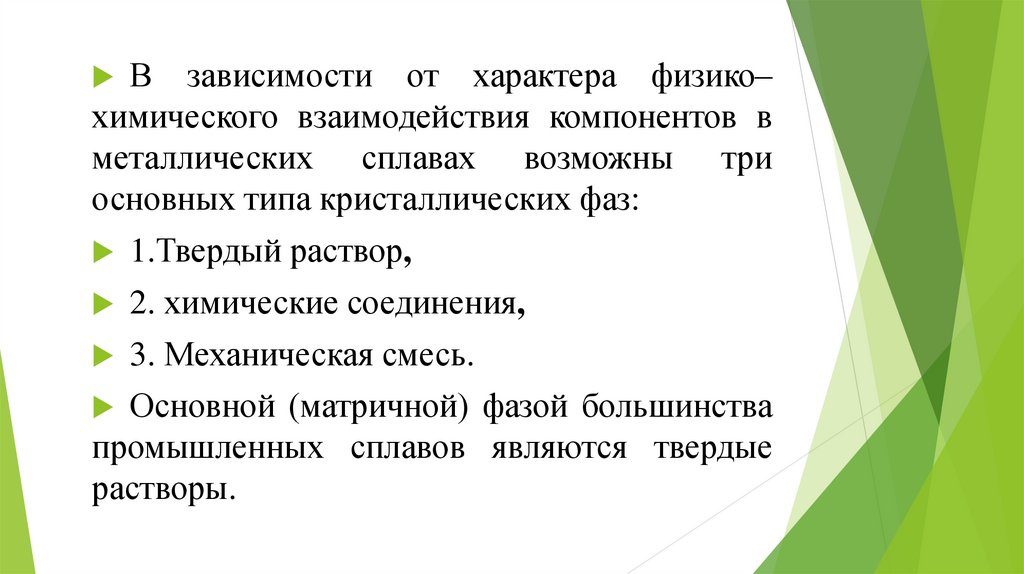 В зависимости от характера физико–химического взаимодействия компонентов в