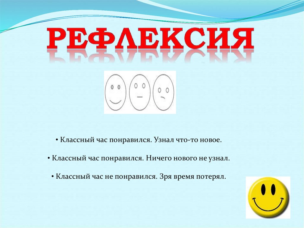 • Классный час понравился. Узнал что-то новое.• Классный час понравился. Ничего нового не узнал.