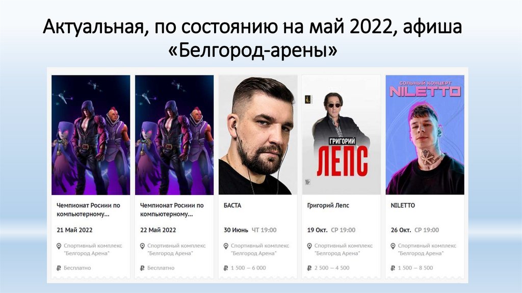 Актуальная, по состоянию на май 2022, афиша«Белгород-арены»