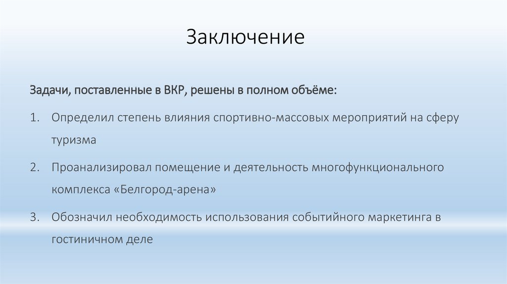 ЗаключениеЗадачи, поставленные в ВКР, решены в полном объёме: