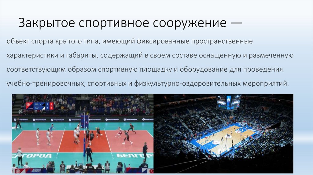 Закрытое спортивное сооружение —объект спорта крытого типа, имеющий фиксированные пространственные
