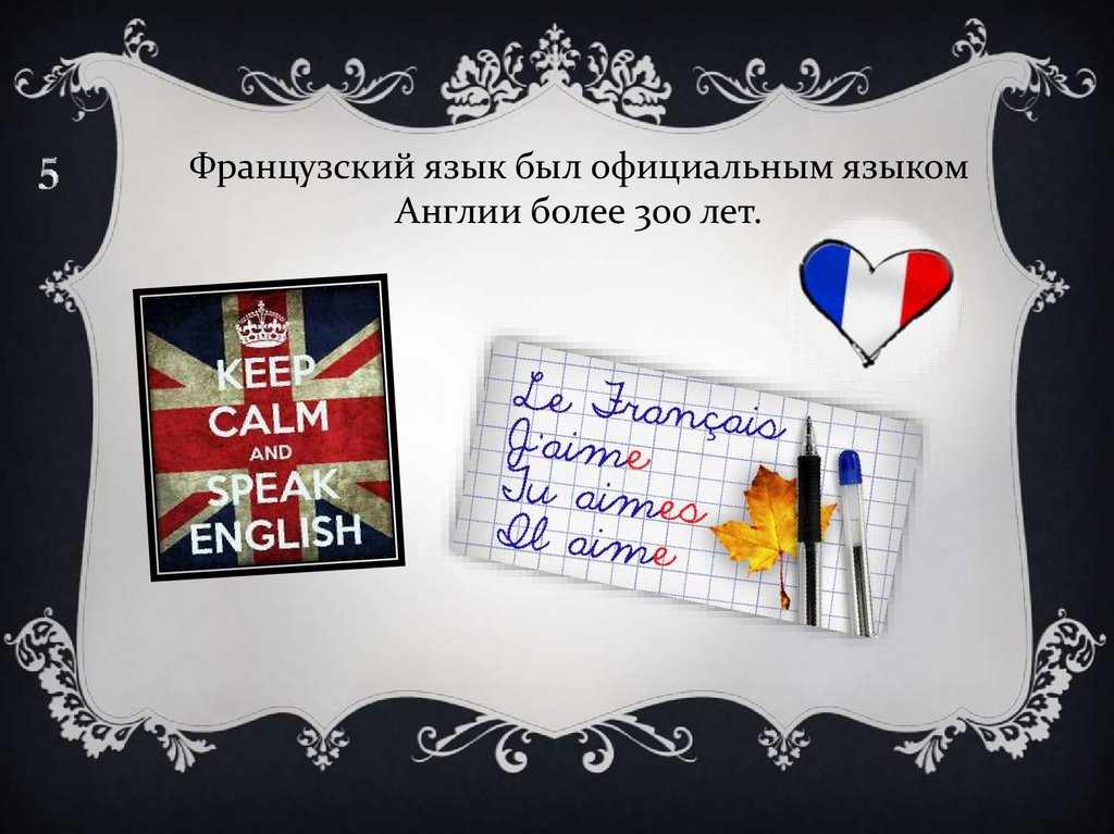 Французский язык был официальным языкомАнглии более 300 лет.