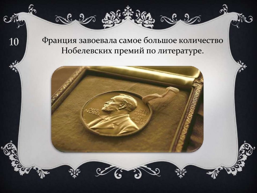 Франция завоевала самое большое количествоНобелевских премий по литературе.