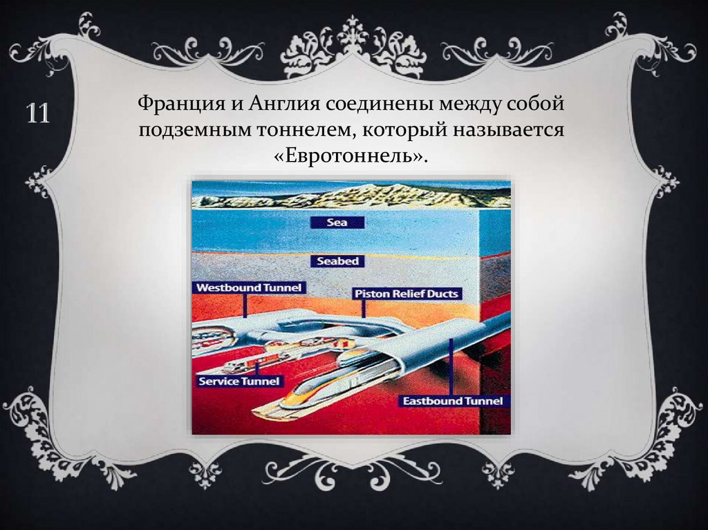 Франция и Англия соединены между собойподземным тоннелем, который называется