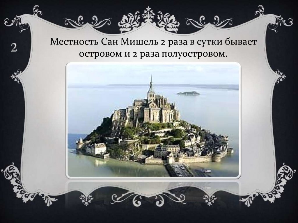 Местность Сан Мишель 2 раза в сутки бываетостровом и 2 раза полуостровом.