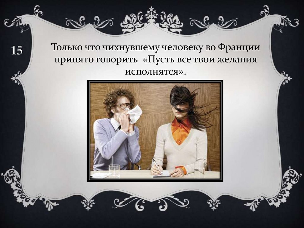 Только что чихнувшему человеку во Франциипринято говорить «Пусть все твои желания