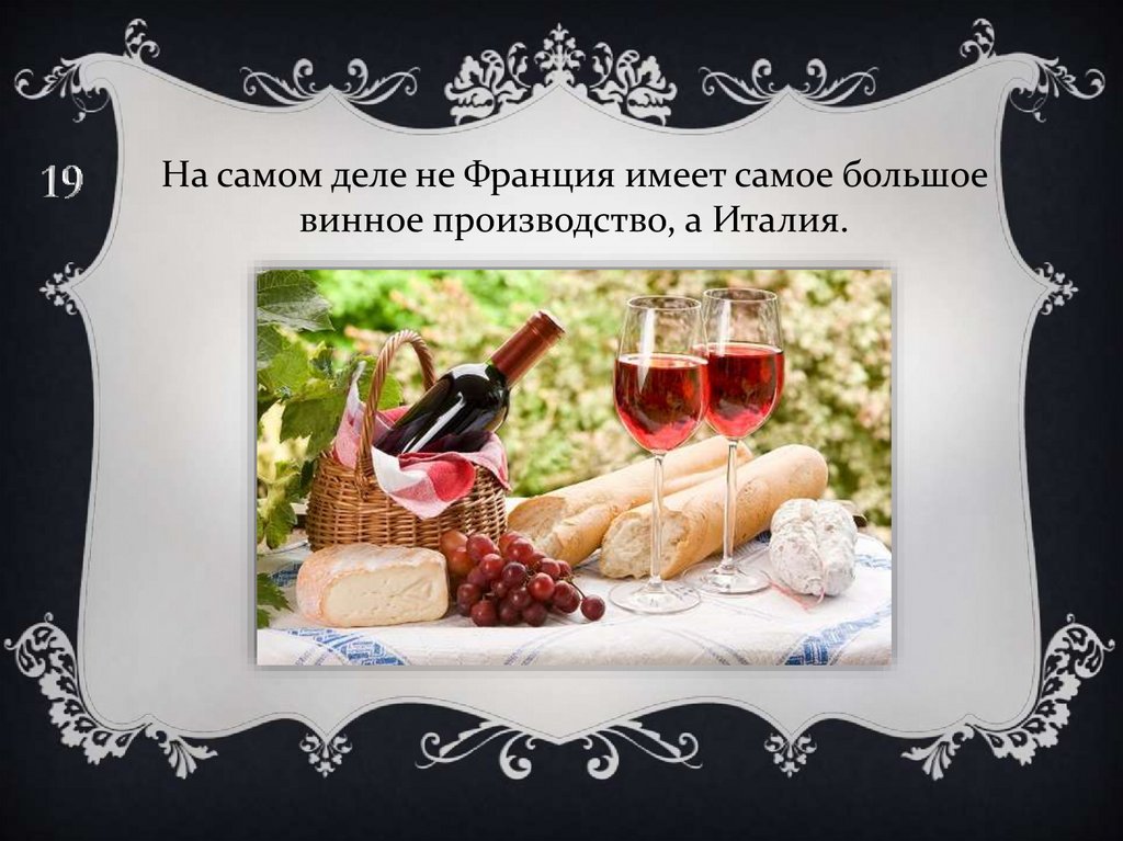 На самом деле не Франция имеет самое большоевинное производство, а Италия.