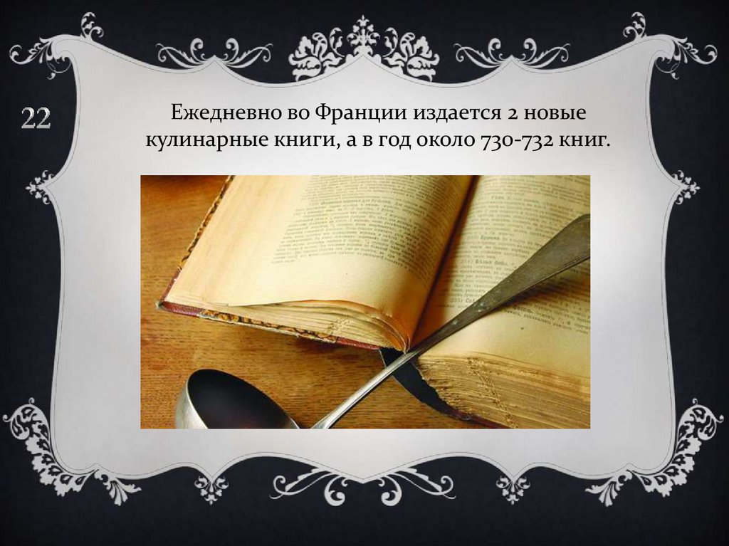 Ежедневно во Франции издается 2 новыекулинарные книги, а в год около 730-732 книг.