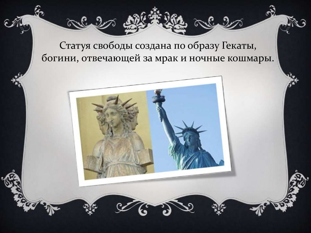 Статуя свободы создана по образу Гекаты,богини, отвечающей за мрак и ночные кошмары.
