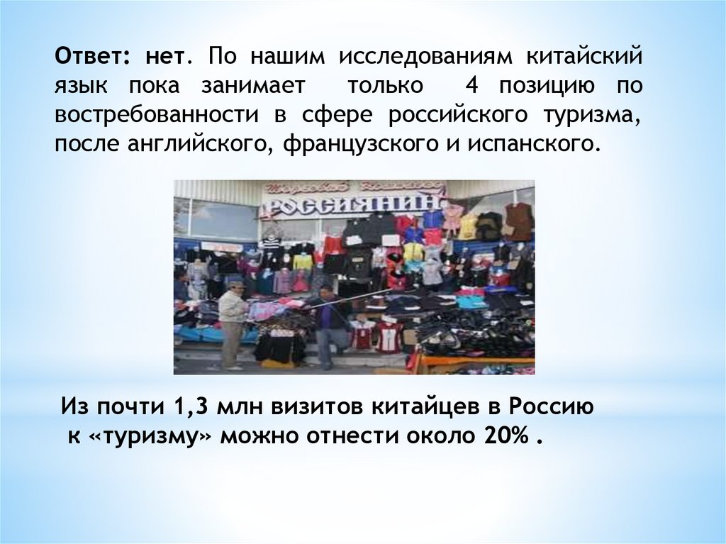 Ответ: нет. По нашим исследованиям китайскийязык пока занимает