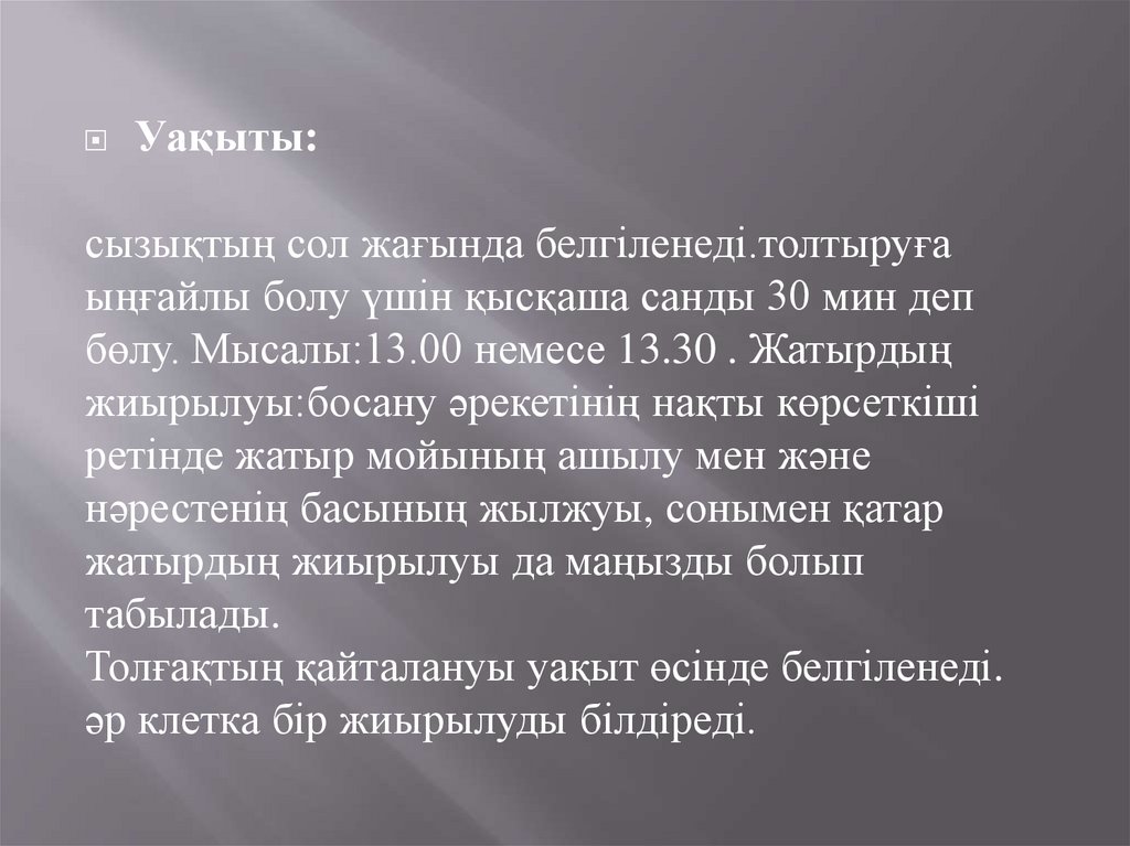 Уақыты:сызықтың сол жағында белгіленеді.толтыруға