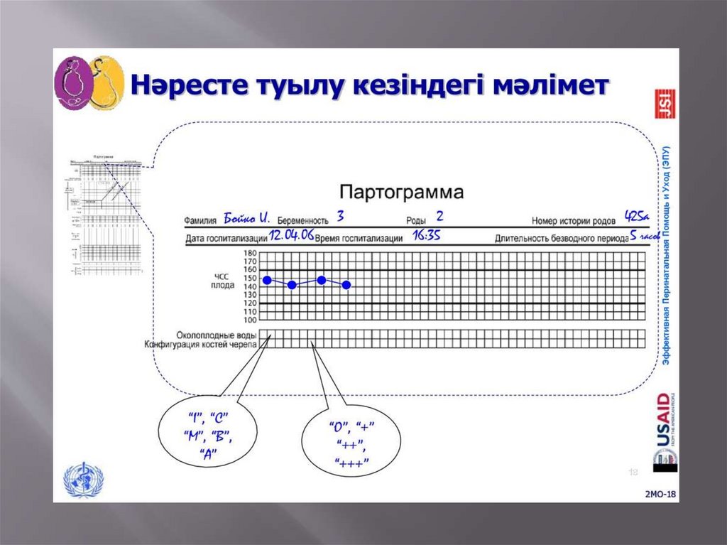 6. Партограмма мақсаты – босану процесінің динамикасын босанушы әйел мен ұрықтың жағдайын бақылай отырып көрсету