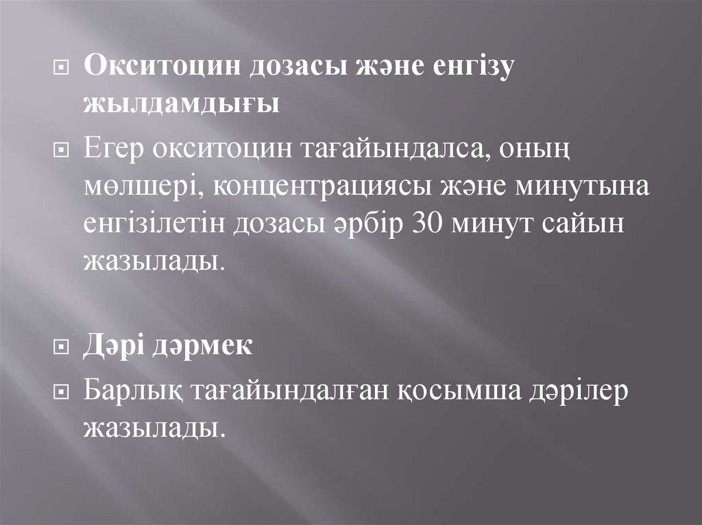 Окситоцин дозасы және енгізужылдамдығы