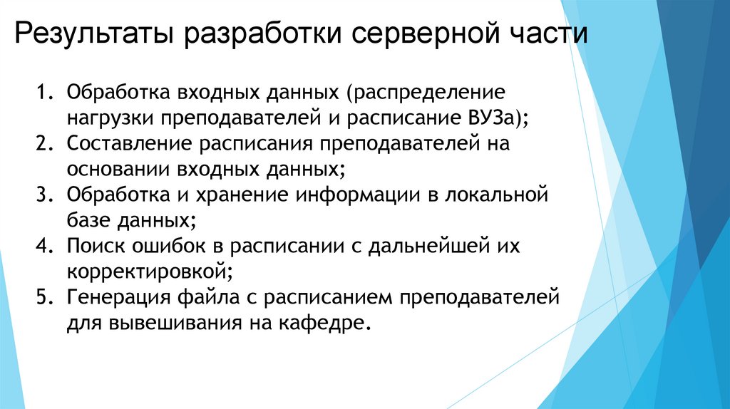 Результаты разработки серверной части1. Обработка входных данных (распределение